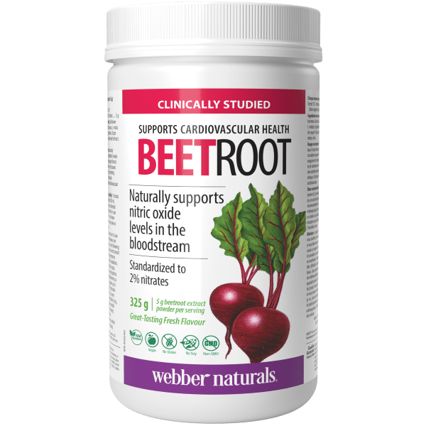 Beetroot from Webber Naturals provides a delightful, black-cherry-flavoured, clinically studied, standardized beetroot extract, with 5 g per scoop, helping to maintain cardiovascular health. It’s the convenient daily supplement you’ve been looking for to prioritize your heart health, even on the busiest of days.
